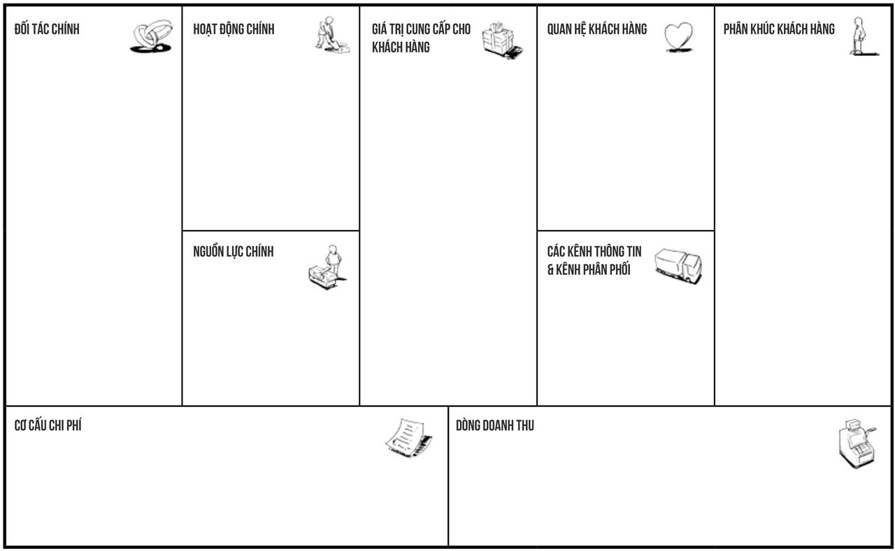 Business model canvas (BMC) được phát triển bởi chuyên gia quản trị người Thuỵ Điển Alexander Osterwalder. Ông đã sử dụng 9 nhóm nhân tố chính cấu thành nên BMC, mà ông hàm ý chúng chính là 9 trụ cột tạo nên tổ chức của một công ty, gồm có: Đối tác chính, Hoạt động kinh doanh chính, Nguồn lực chính, Giá trị thặng dư, Quan hệ khách hàng, Kênh thông tin và Phân phối, Phân khúc khách hàng, Cơ cấu chi phí và Dòng doanh thu.