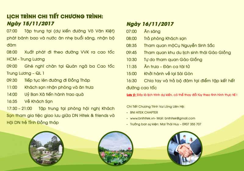 Lưu ý: Đây là lịch trình dự kiến, có thể thay đổi tùy theo tình hình thực tế