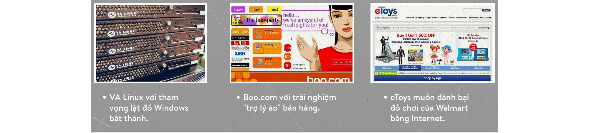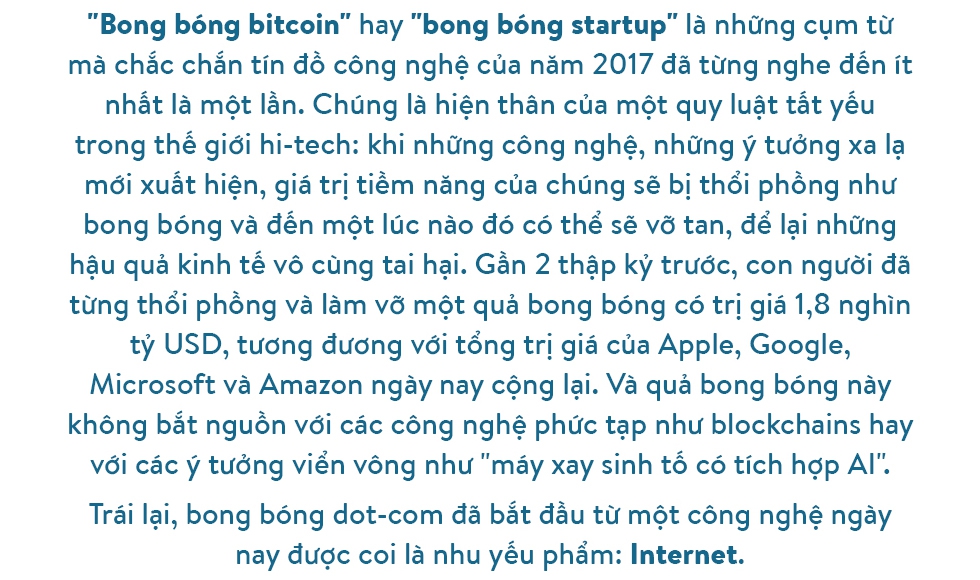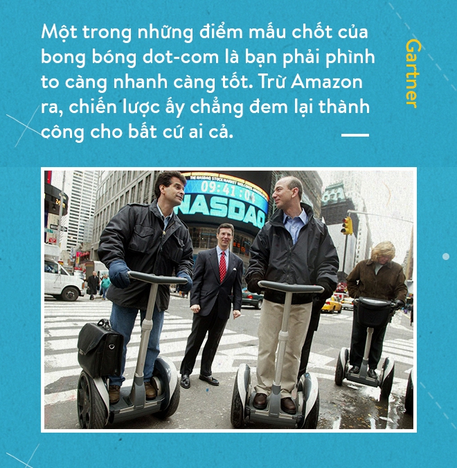 Đúng vậy, dot-com là một thời đại quá đặc biệt trong cả lịch sử nước Mỹ. Nỗi sợ hãi và tò mò dành cho Internet cũng như sự cố Y2K đến gần đưa nhu cầu đầu tư vào hạ tầng IT tăng cao đột biến, cùng lúc các đột phá của Netscape và Internet Explorer cũng như định luật Moore giúp Internet trở thành sân chơi "mở" của hàng triệu người. Những ấn tượng mơ hồ về Internet thời đại mở cửa khiến cho hàng loạt startup ra đời với những mô hình hoạt động hoàn toàn xa rời thực tế, các nhà đầu tư mờ mắt chạy theo các IPO có giá trị "ảo" mà không nhận ra rằng nguồn vốn, nguồn lực con người là cực kỳ giới hạn.