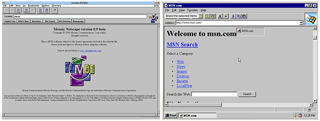 Netscape thành lập vào năm 1994, trình duyệt Mosaic Netscape 0.9 được phát hành vào tháng 10 năm đó. Chỉ trong vòng vài tháng, Netscape nhanh chóng lật ngôi tiền thân "Mosaic" để thâu tóm 3/4 thị trường trình duyệt đang bùng nổ, đánh bại cả "tiêu chuẩn" Mosaic. Với chất lượng trải nghiệm vượt trội và cực kỳ trực quan, Netscape có thể coi là điểm khởi đầu của một Internet dành cho tất cả mọi người. Từ nay, Internet không còn là những đoạn text nhàm chán.