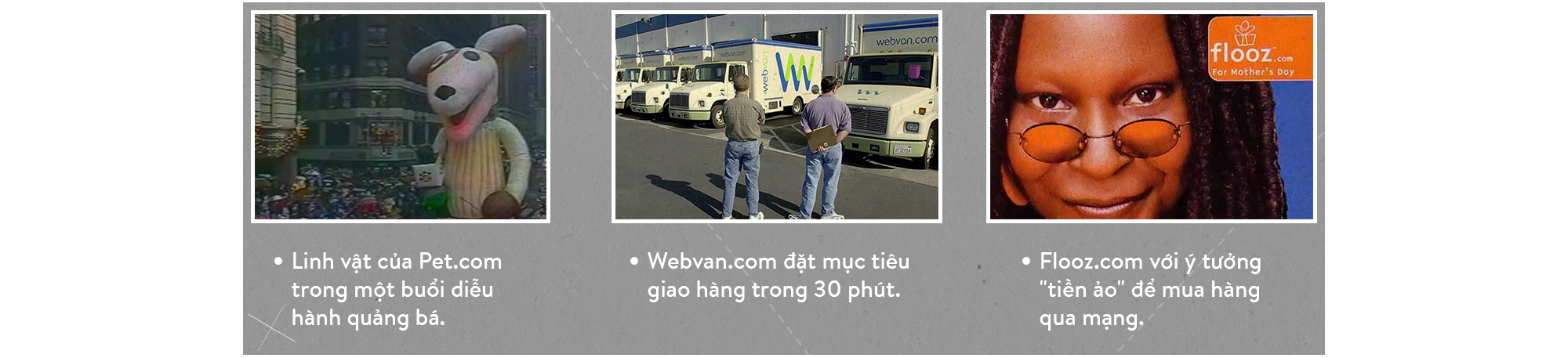 Nhìn lại, ai cũng biết đó toàn là những ý tưởng viển vông. Nhưng, hãy nhớ rằng vào thập niên 1990, ý niệm của mọi người về Internet vẫn rất mơ hồ. Ai cũng có thể tính ra khoản tiền họ có thể tiết kiệm khi không phải thuê địa điểm kinh doanh, nhưng lại chẳng mấy ai tính đến chi phí kho hàng, các vấn đề con người và đặc biệt là chi phí hạ tầng IT. Không một thành viên nào trong ban quản trị Webvan từng có kinh nghiệm trong lĩnh vực siêu thị. Trang bán quần áo Boo.com thuê tới 400 nhân viên trong khi nhu cầu thực tế chỉ vào khoảng 30 người.