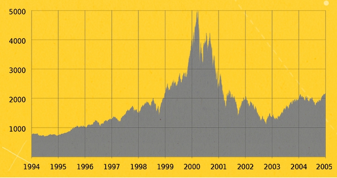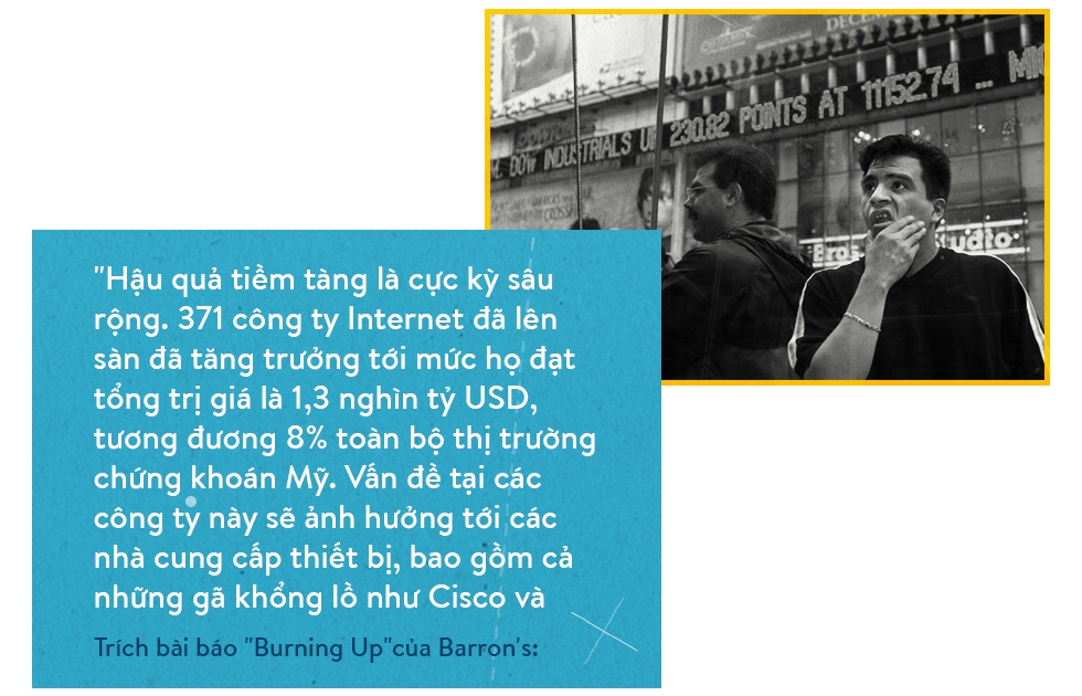 Theo khẳng định của tờ Time, nhiều người thậm chí còn bỏ công việc chính để dành cả ngày sống chết với cổ phiếu hi-tech tại các sàn giao dịch. Chỉ số NASDAQ (có thể hiểu nôm na là giá trị trung bình của các cổ phiếu được giao dịch trên sàn này) liên tục leo thang.
