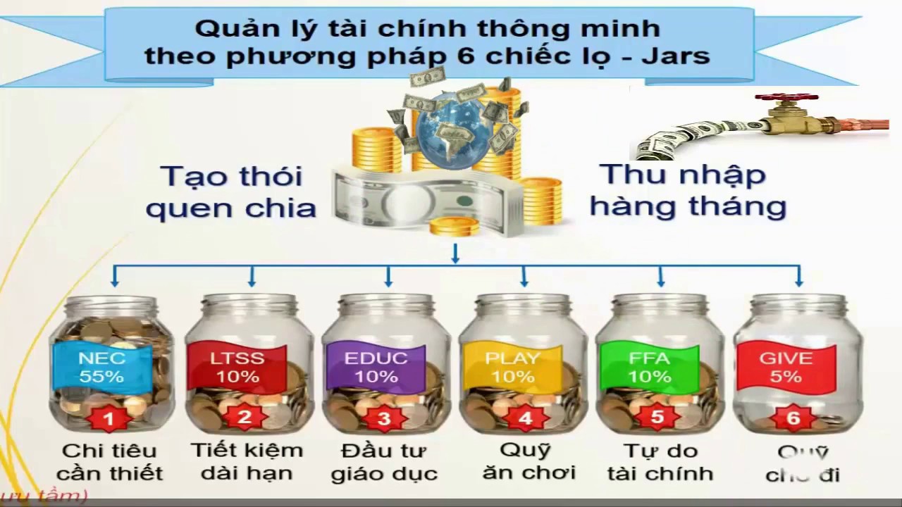 – Quỹ hưởng thụ hay chiếc lọ thứ 4 cần được tiêu liên tục, nó phải hết vào mỗi cuối tháng. Nếu nó thừa tiền, bạn cần cân bằng lại cuộc sống của mình bằng cách nghĩ tới việc chăm sóc cho bản thân mình, nếu nó thiếu, bạn cần tập trung cho việc kiếm tiền của mình.