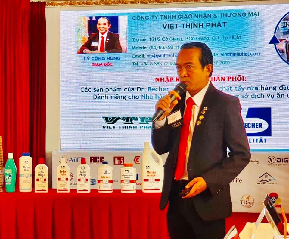 10. Ah, còn một ngành mới của anh nữa nhé, anh có nhập khẩu dòng hoá Mỹ phẩm từ Đức thương hiệu Dr Beacher dùng trong hệ thống Horeca và các nhà máy chế biến Thủy Hải sản như : Chất khử trùng , chất tẩy rửa, chất bảo vệ da cho túi xách, Salon…; ai muốn hàng chất lượng cao thì alo cho anh ấy nhé.