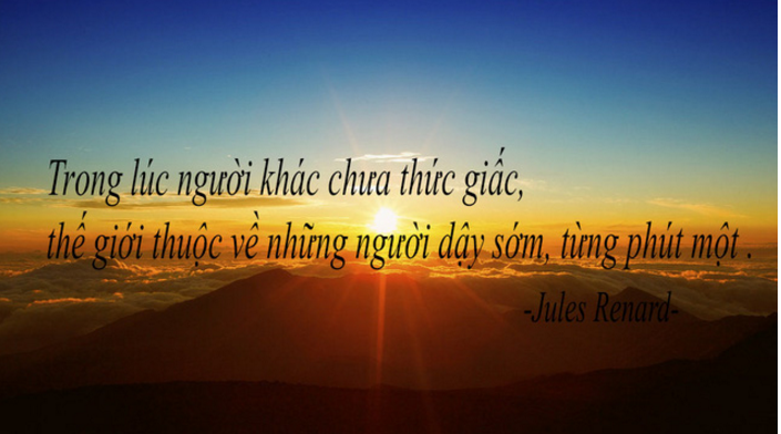 Từng có thời gian tôi cố gắng thức dậy sớm nhưng thất bại. Ý tưởng dậy sớm thường khiến tôi rất hào hứng nhưng rồi mọi chuyện kết thúc khi tôi với tay tắt đồng hồ báo thức. Những lần thất bại đó khiến tôi có cảm giác chiến thắng bản thân rất tuyệt với khi có thể thực hiện được việc dậy sớm trước bình minh.