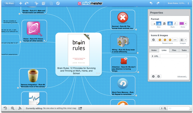 Mindmeister là phần mềm chạy trên trình duyện web, cũng như có ứng dụng trong iphone, ipad syncronize được với nhau. Một điểm hay nữa là phần mềm này cho phép bạn add thêm người vẽ làm việc nhóm sẽ dễ dàng hơn rất nhiều. Nhược điểm của nó là bản free tương đối hạn chế về việc lưu giữ các biểu đồ, và sử dụng công cụ vẽ mất một chút thời gian để thích nghi.