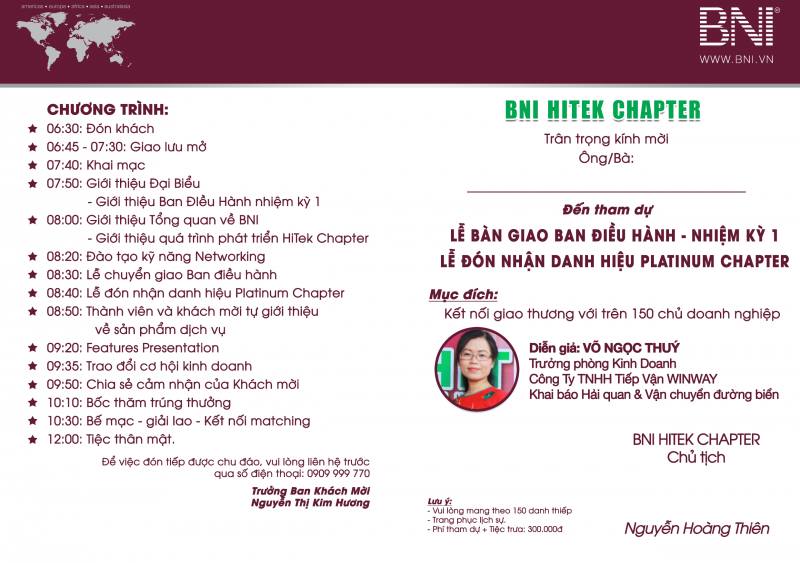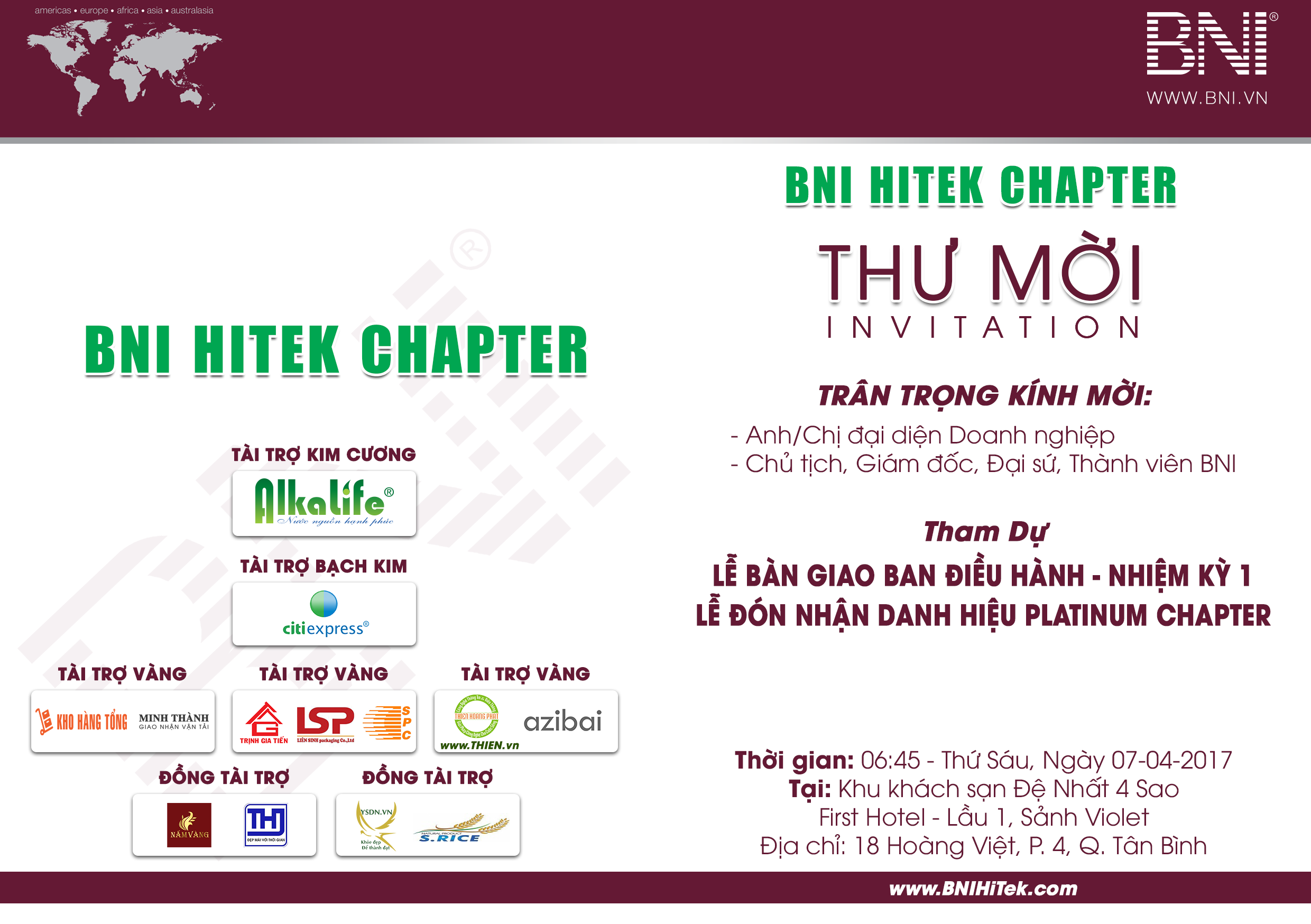 ♦ Mọi chi tiết vui lòng tham khảo thêm BNI HiTEK Chapter tại website: http://www.BniHitek.vn