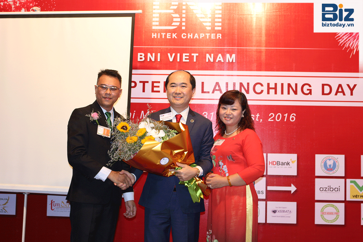 Chủ tịch BNI Ông HỒ QUANG MINH, Giám đốc Vùng HCM6 NGUYỄN THU ANH, Chủ tịch HiTEK Chapter Ông NGUYỄN HOÀNG THIÊN