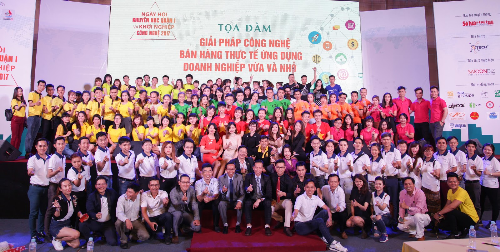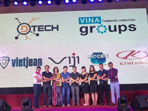 Đội ngũ nhân viên kinh doanh DTech tham gia cuộc thi "Amazing Race" chụp hình cùng ban tổ chức và các đại biểu.