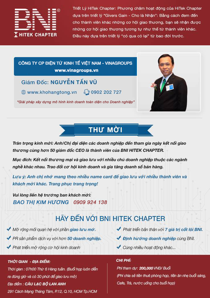 THƯ MỜI THAM GIA BUỔI KẾT NỐI KINH DOANH - BNI HiTEK CHAPTER