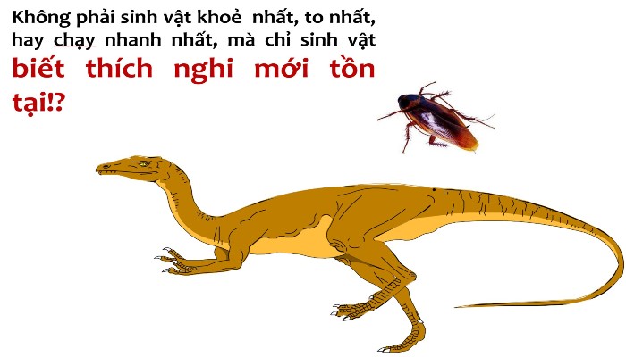 Hãy nhìn con gián và con khủng long? Mặc dù khủng long được mệnh danh là chúa tể của muôn loài nhưng chúng có tồn tại đến ngày nay được không? Ngược lại một con vật bé nhỏ như gián với sự nhạy bén và thích nghi, đã có thể tồn tại tới tận ngày nay.